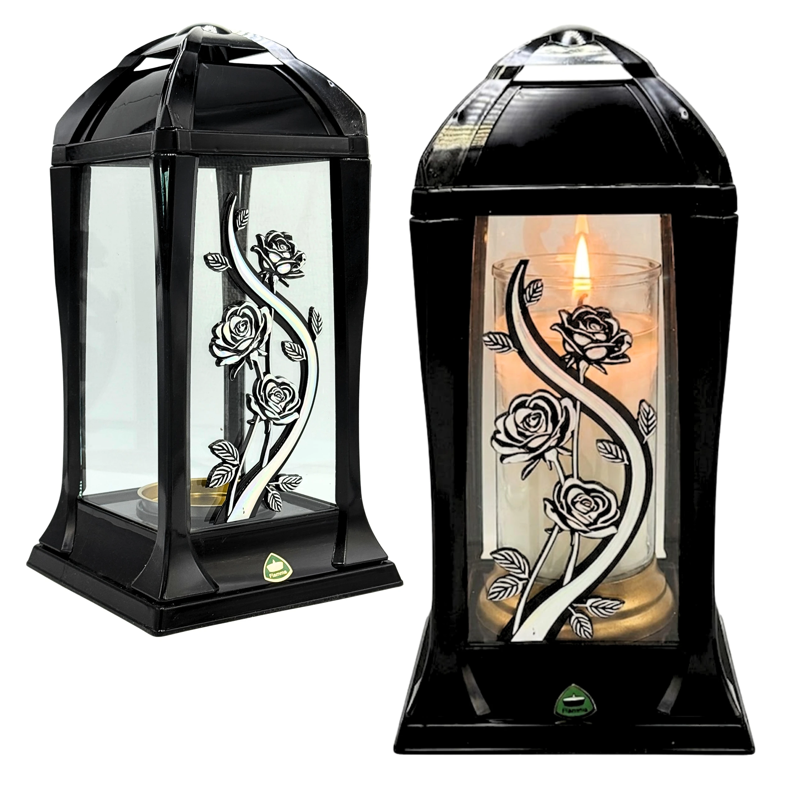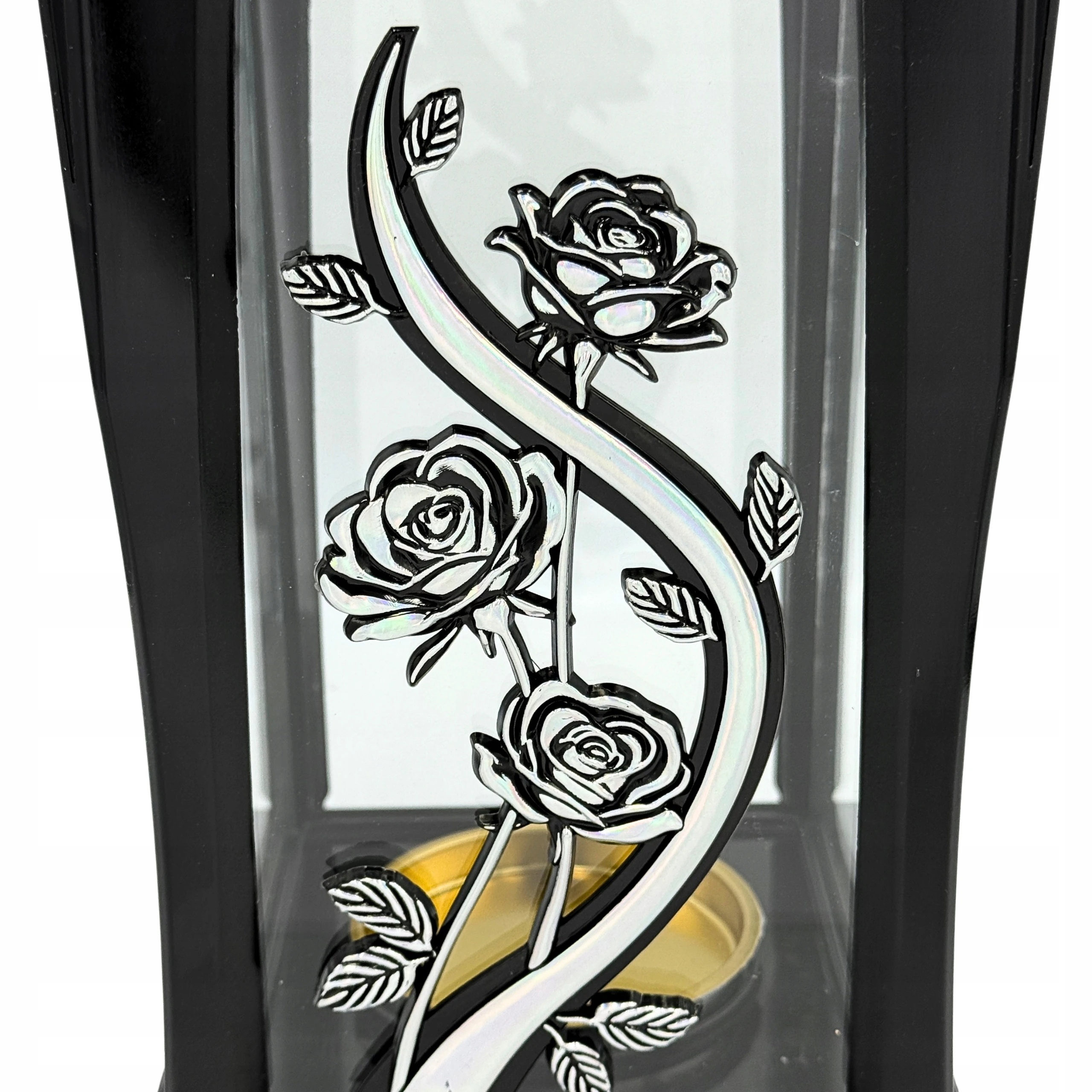 Znicz Kapliczka Róża Czarno-Srebrna 30 cm