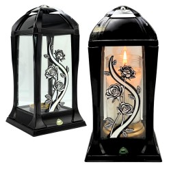- znicz szklany w kolorze czarnym z ozdobnym, naklejanym motywem róży