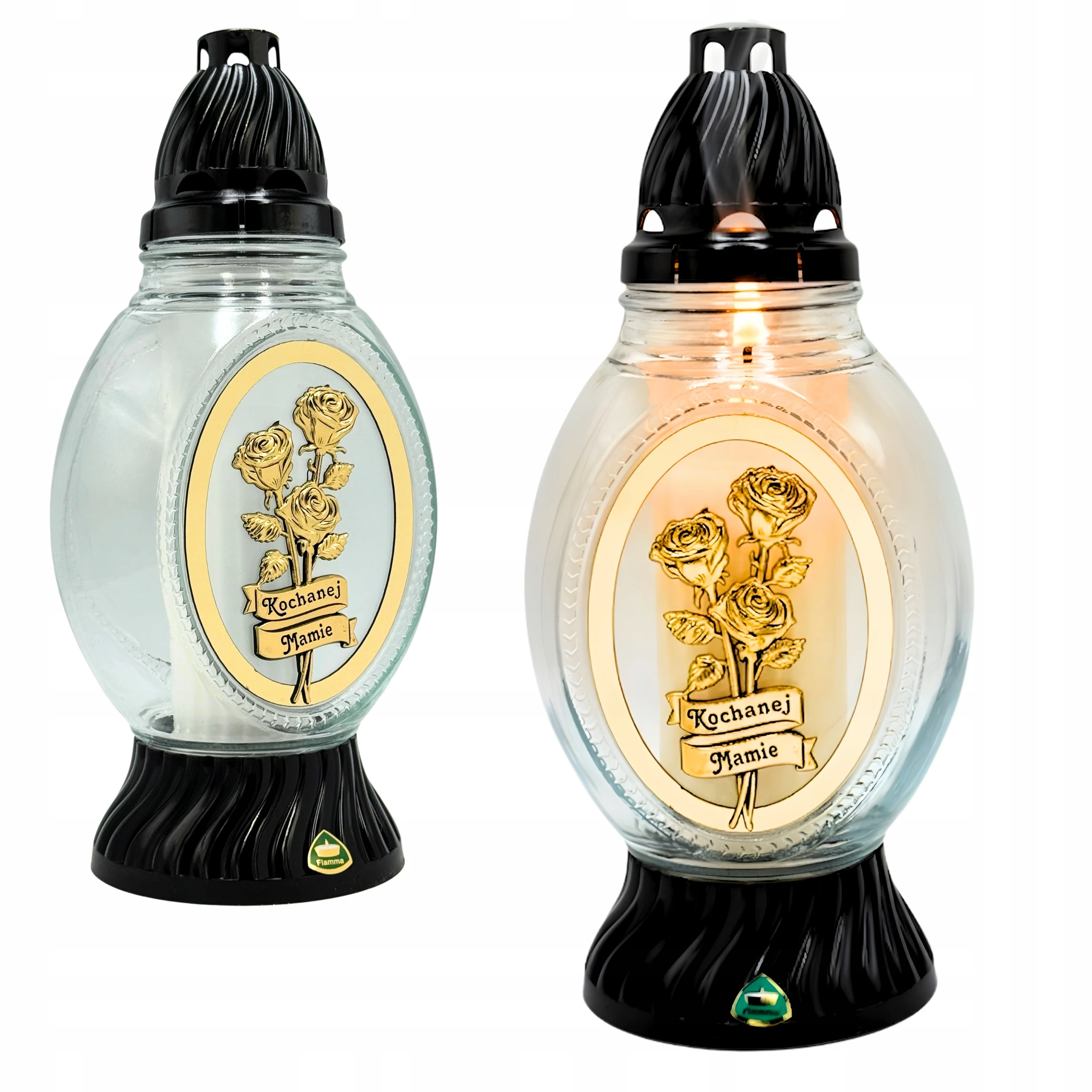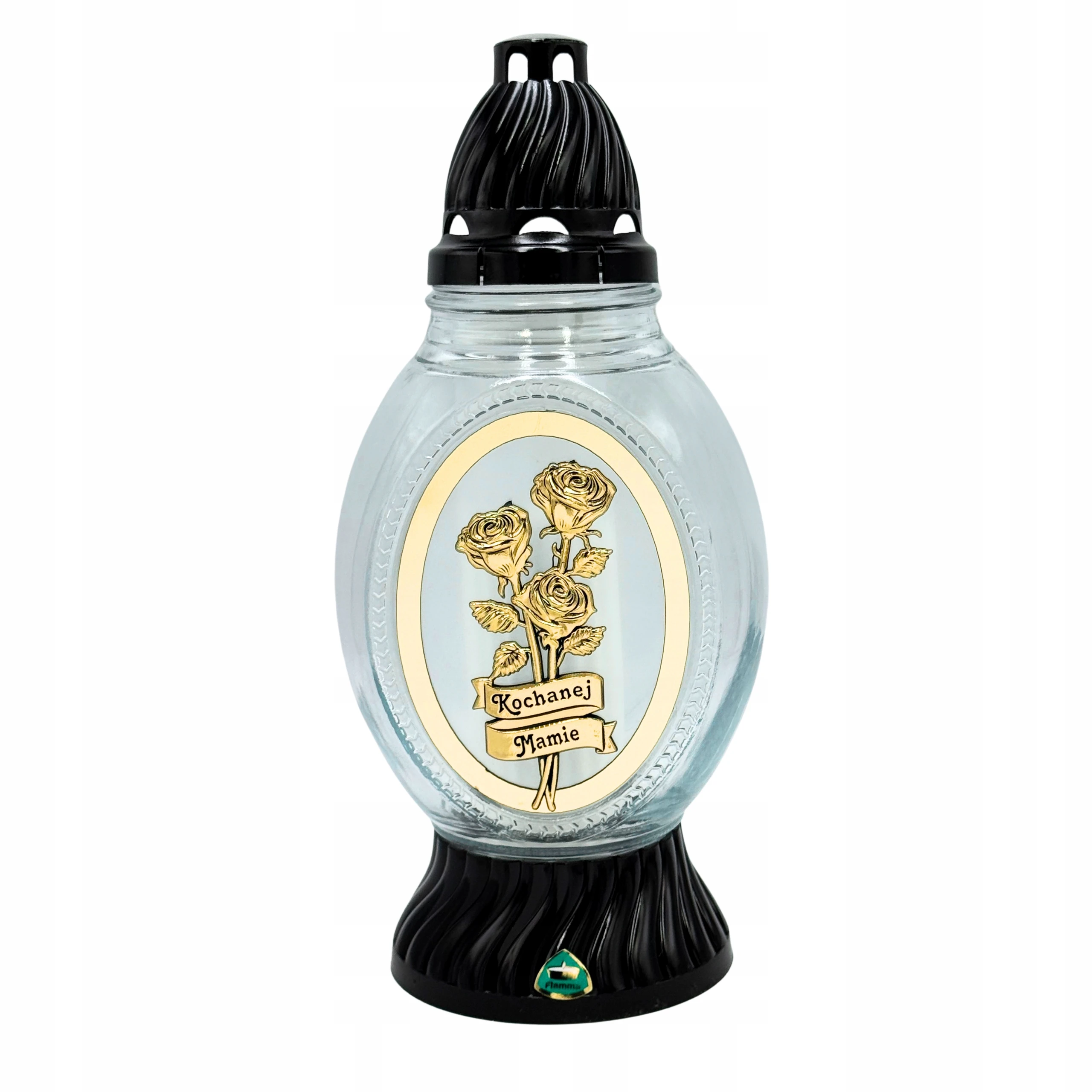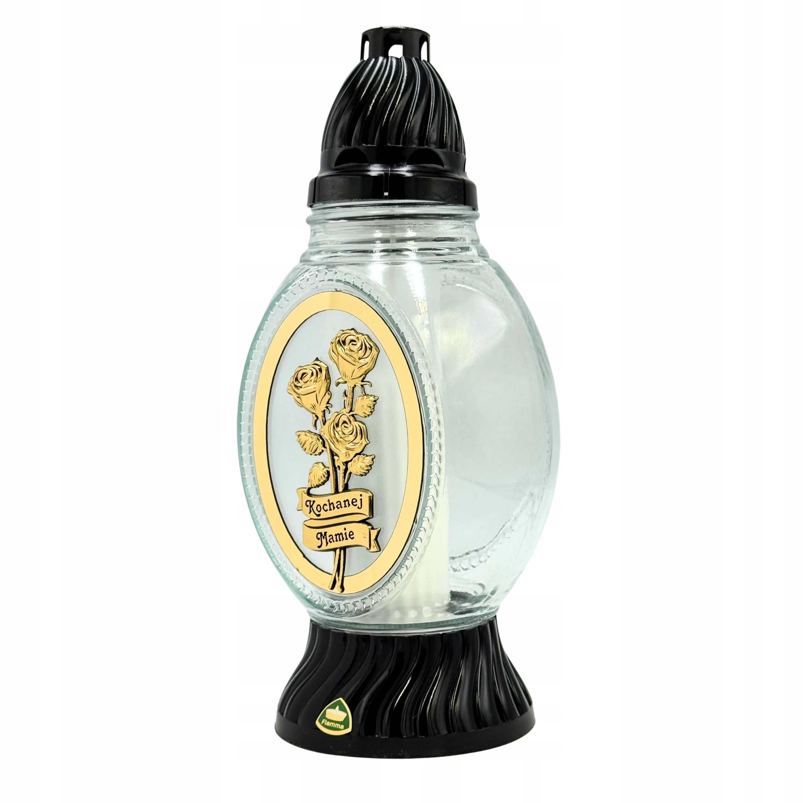 Znicz dla Mamy szklany róża 30 cm czarno-złoty Znicz Kochanej Mamie