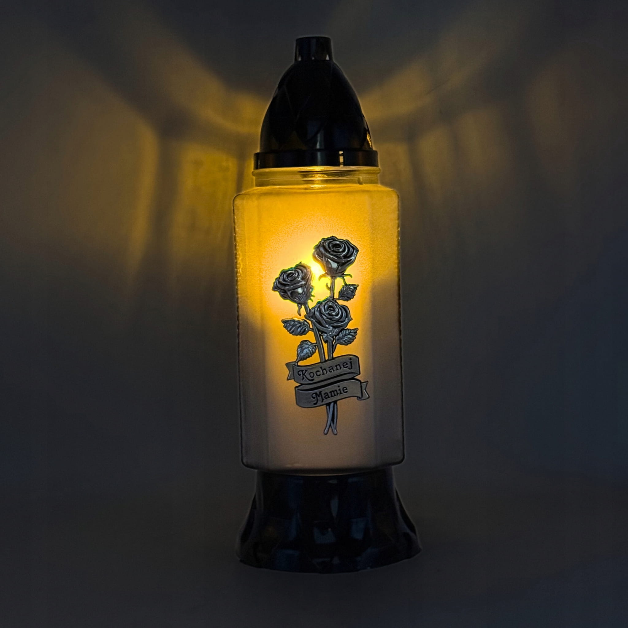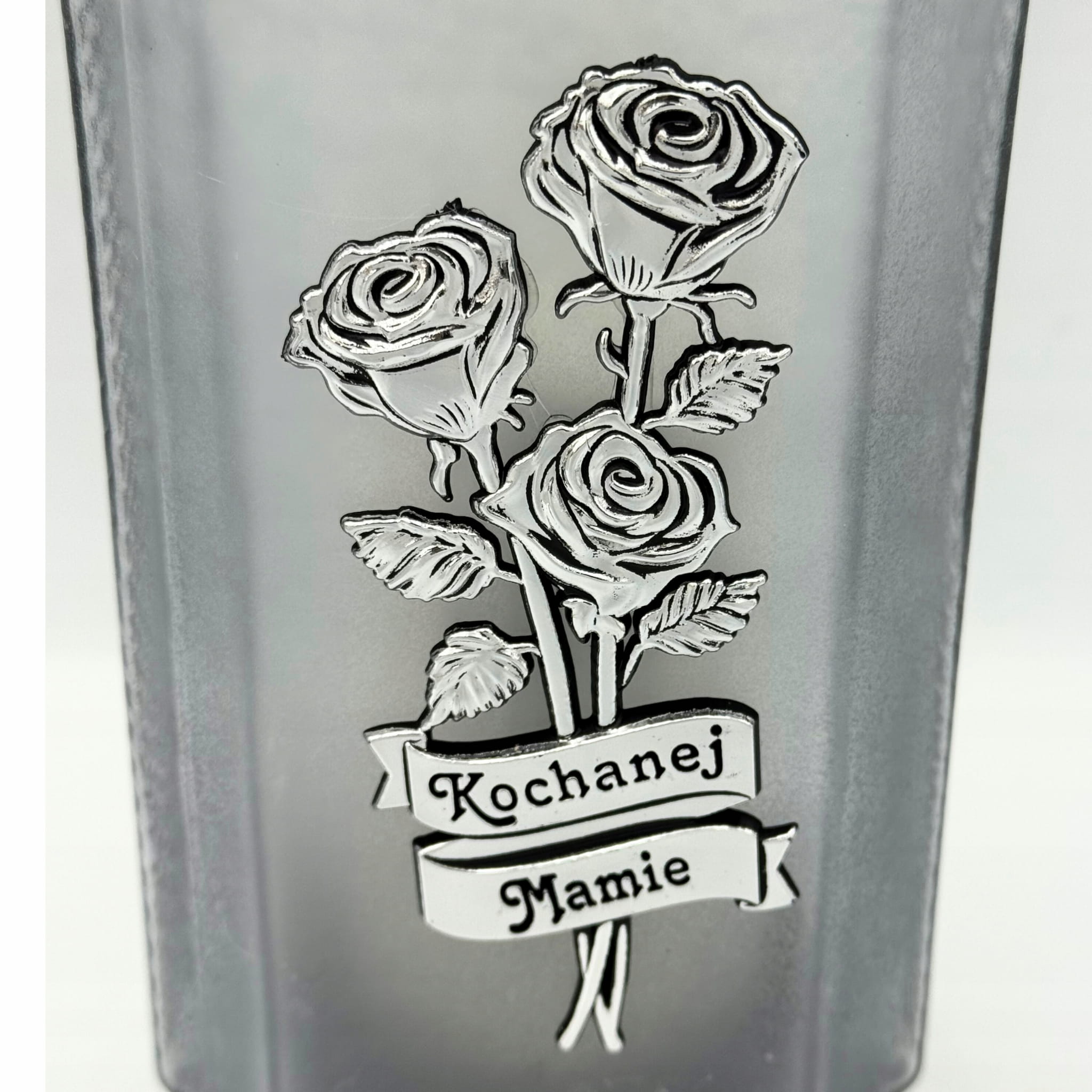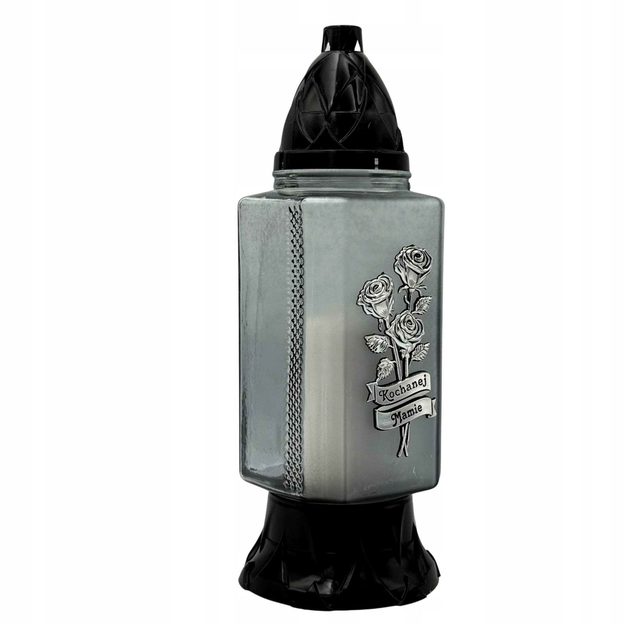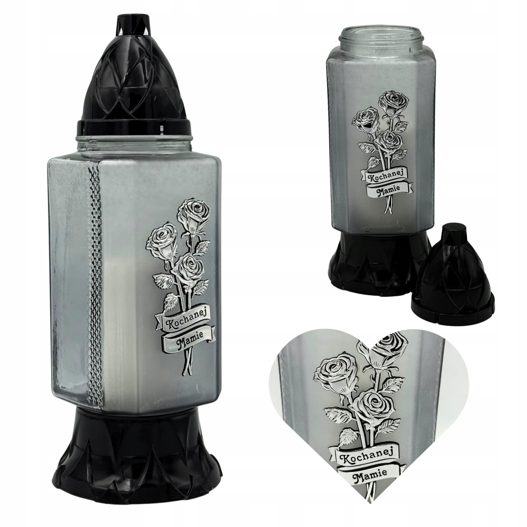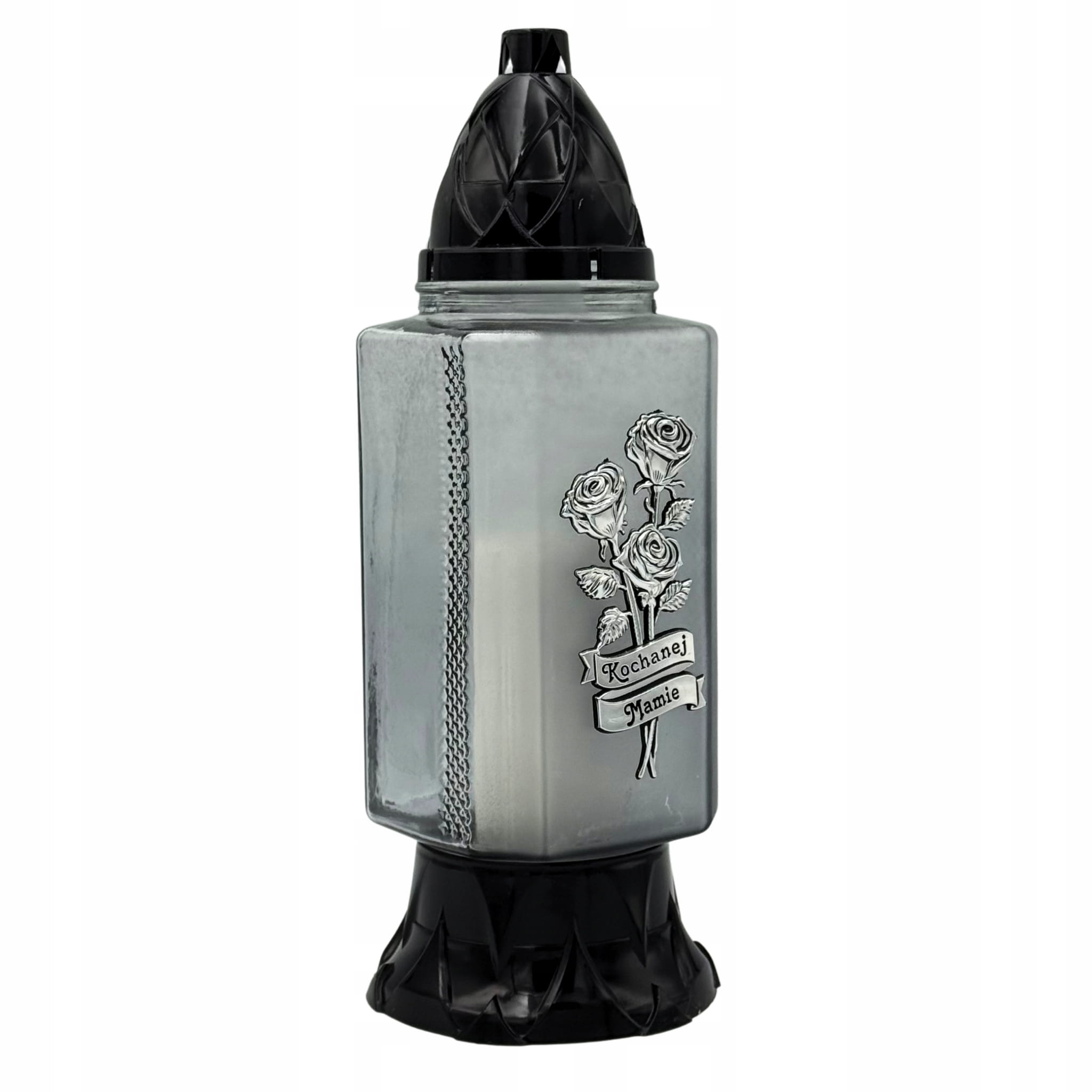 Znicz na Grób Znicz Dzień Mamy Srebrny Lampion z Różą + Wkład Parafinowy