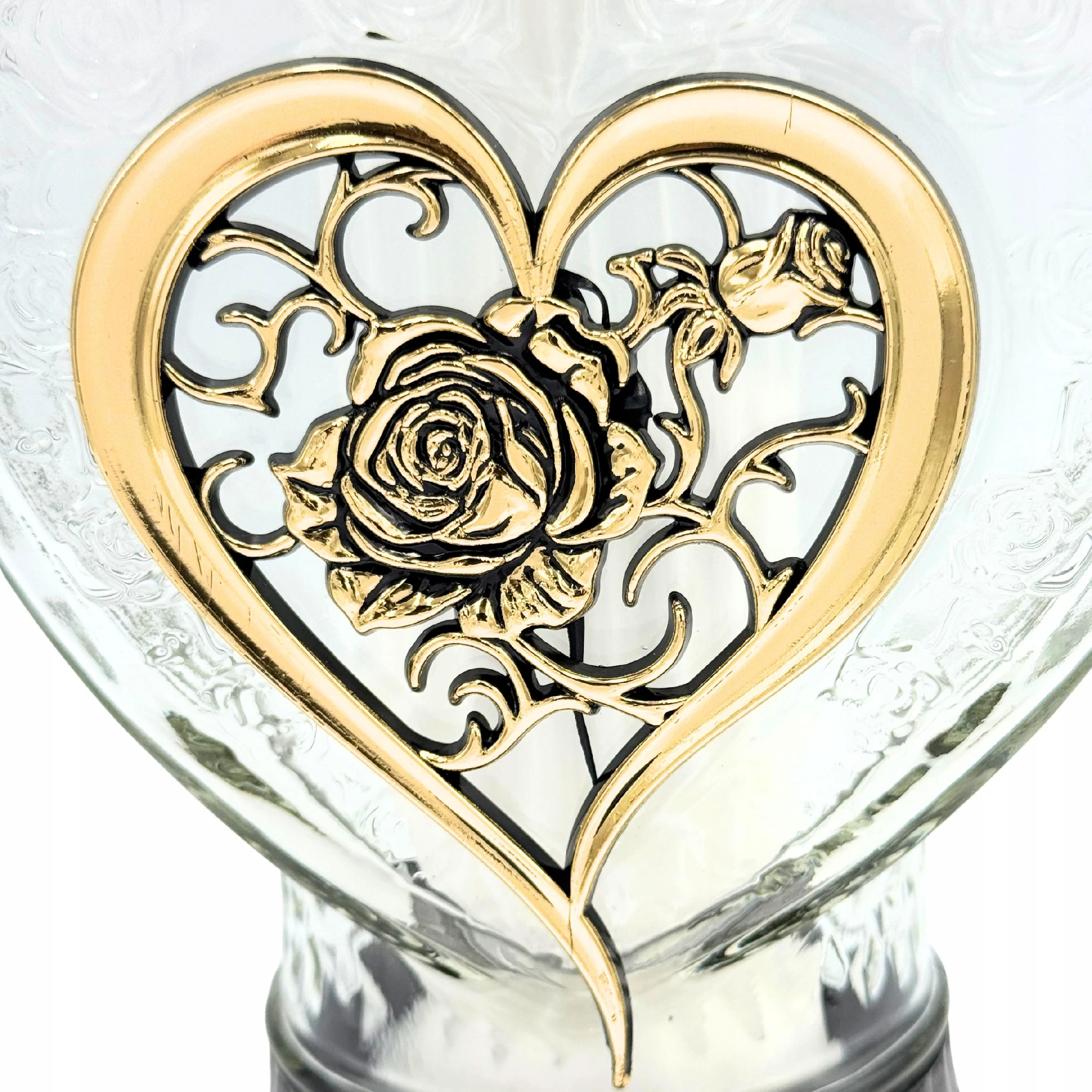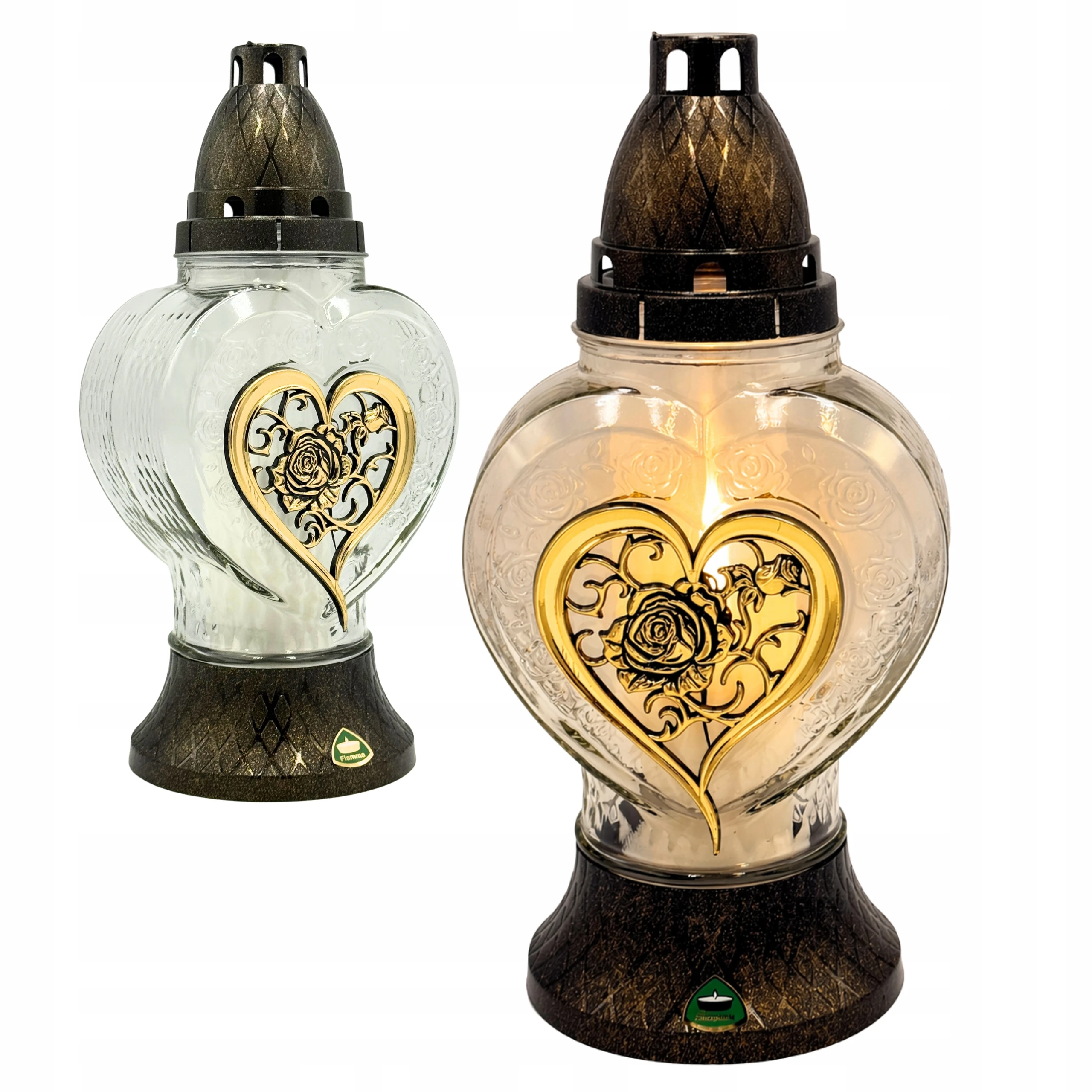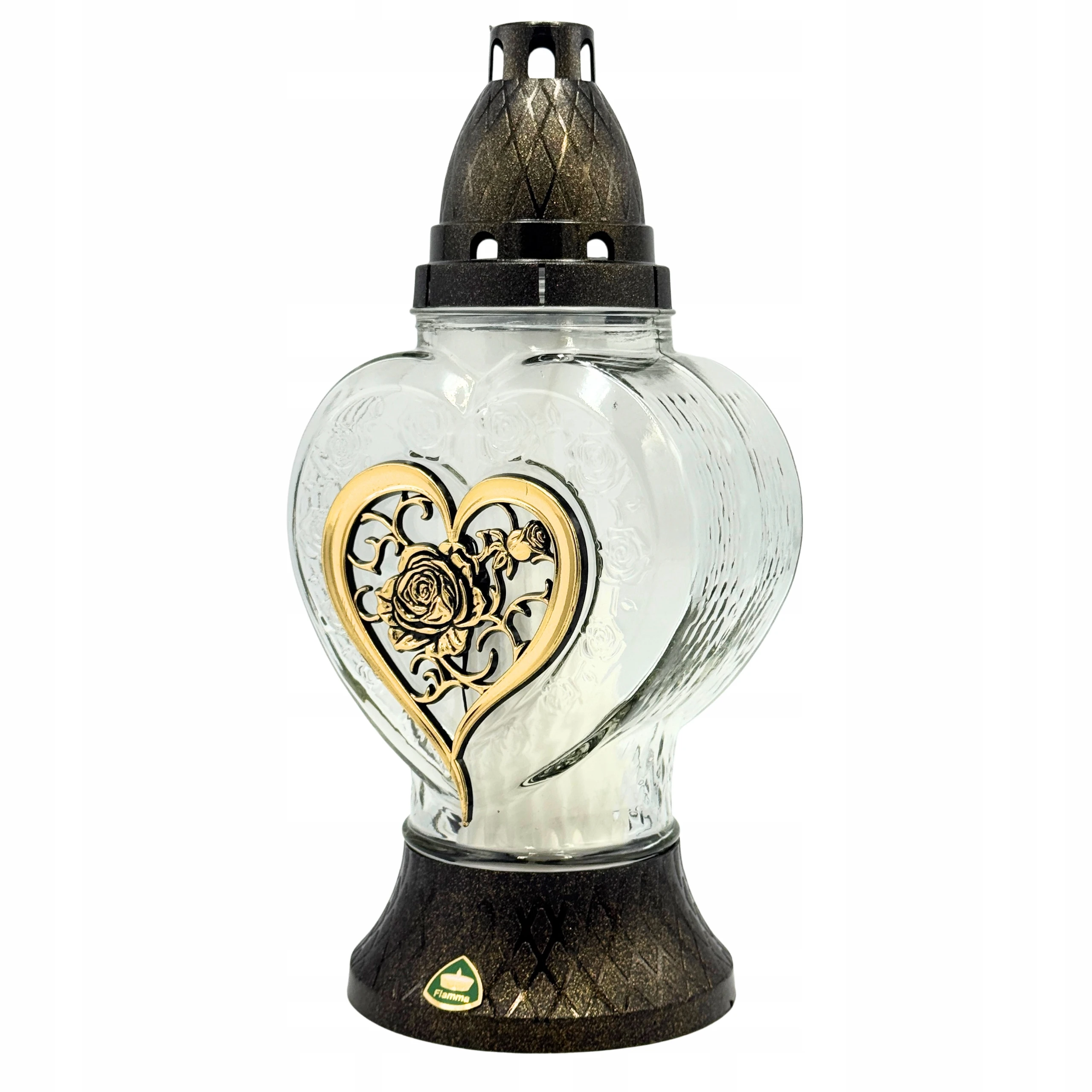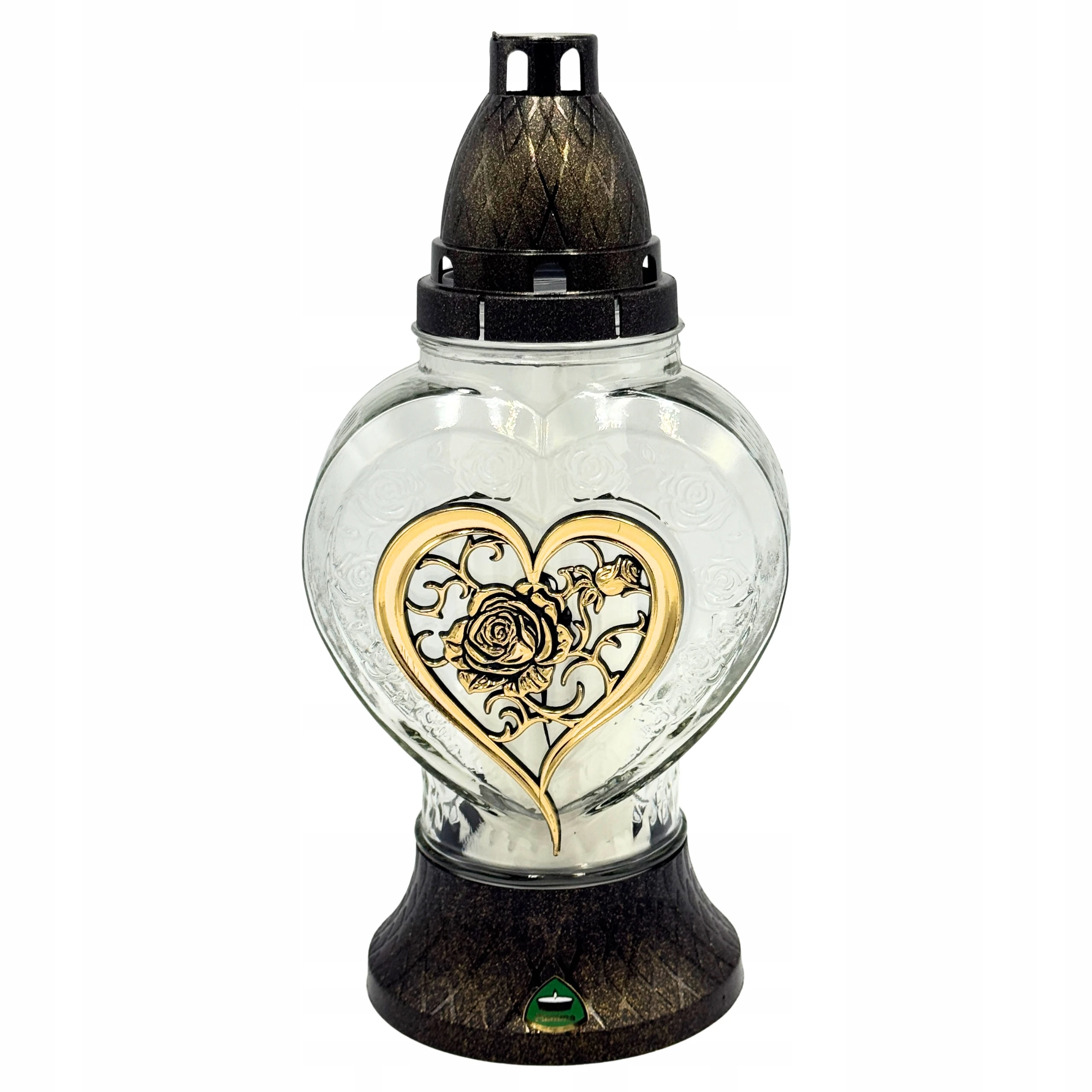 Znicz serce szklany róża 28 cm złoty + Wkład parafinowy