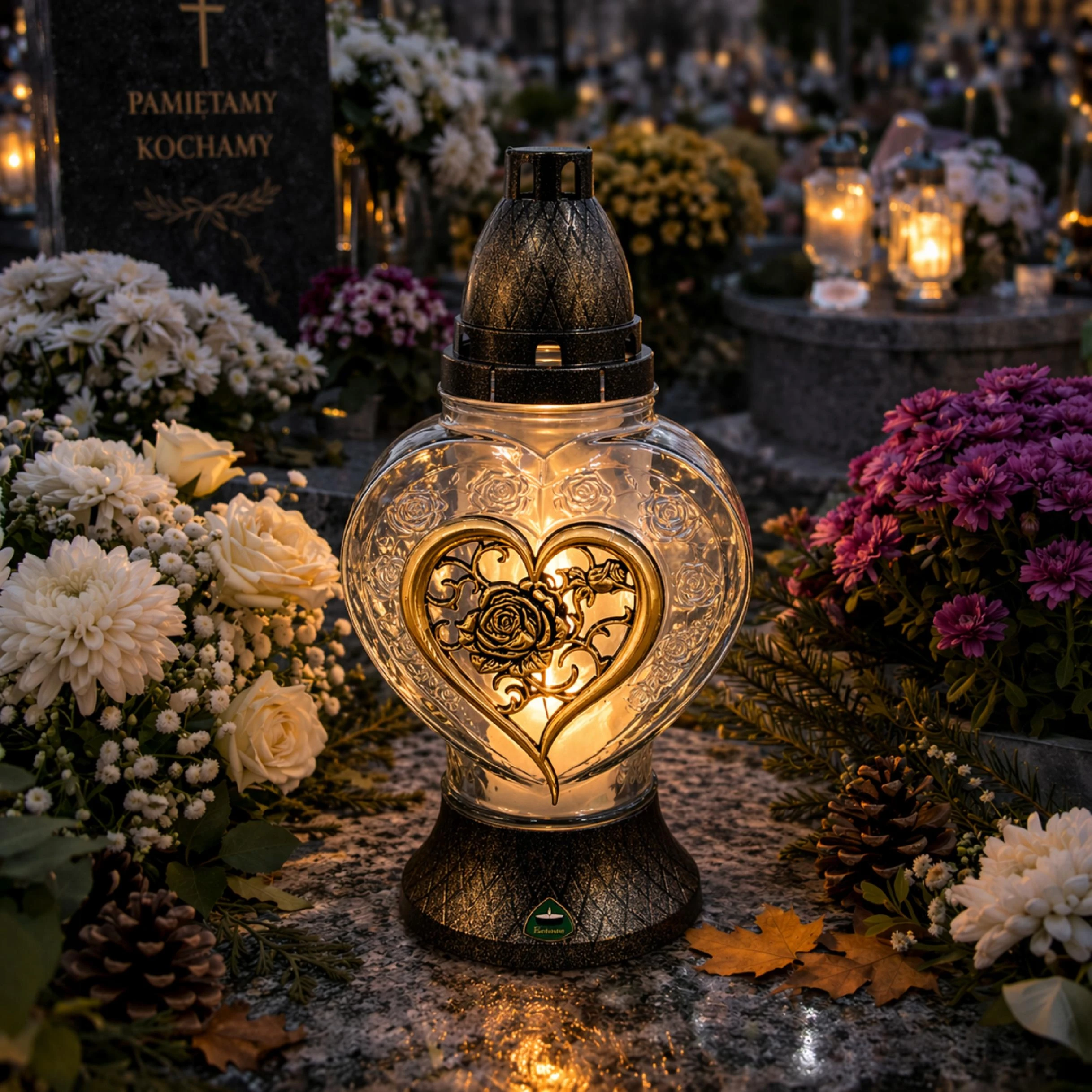 ✦ Stabilna konstrukcja – solidna podstawa sprawiają, że znicz dobrze stoi nawet przy wietrze.