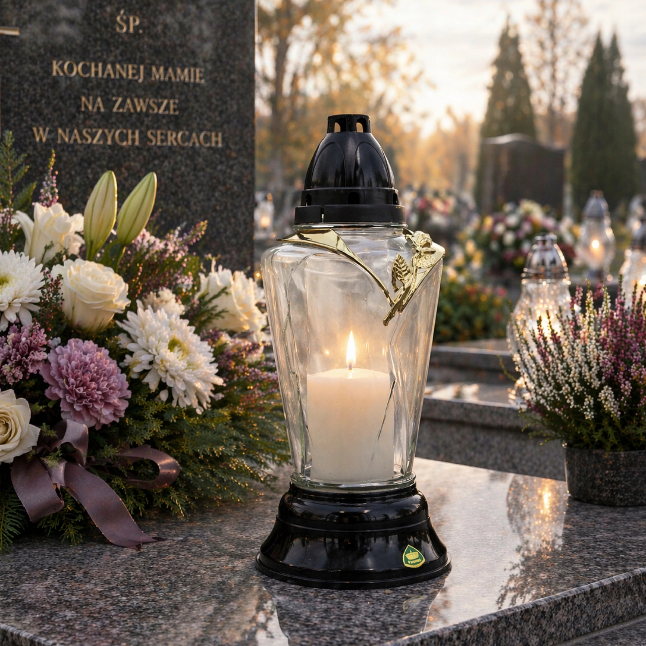 ✦ Elegancki wygląd – ozdobne elementy nadają zniczowi uroczysty charakter