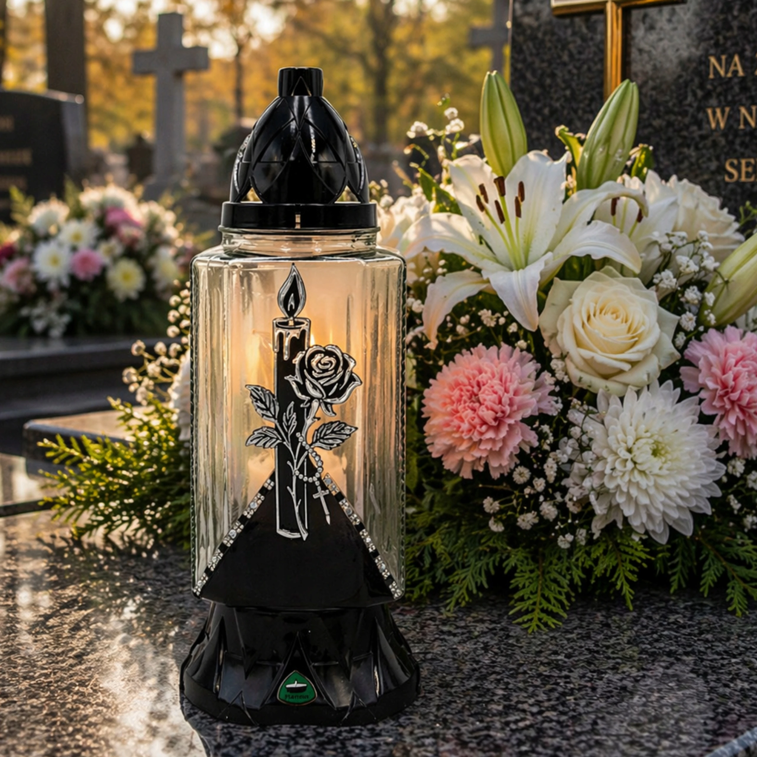 - Ustawiaj znicze na stabilnym i niepalnym podłożu/ Nie przenoś ani nie dotykaj rozgrzanego lub działającego znicza/ Nie ingeruj w konstrukcję znicza ani jego elementy/ Chroń przed dziećmi i zwierzętami/ Utylizuj zgodnie z przepisami/ Zachowaj bezpieczną odległość od innych zniczy i dekoracji