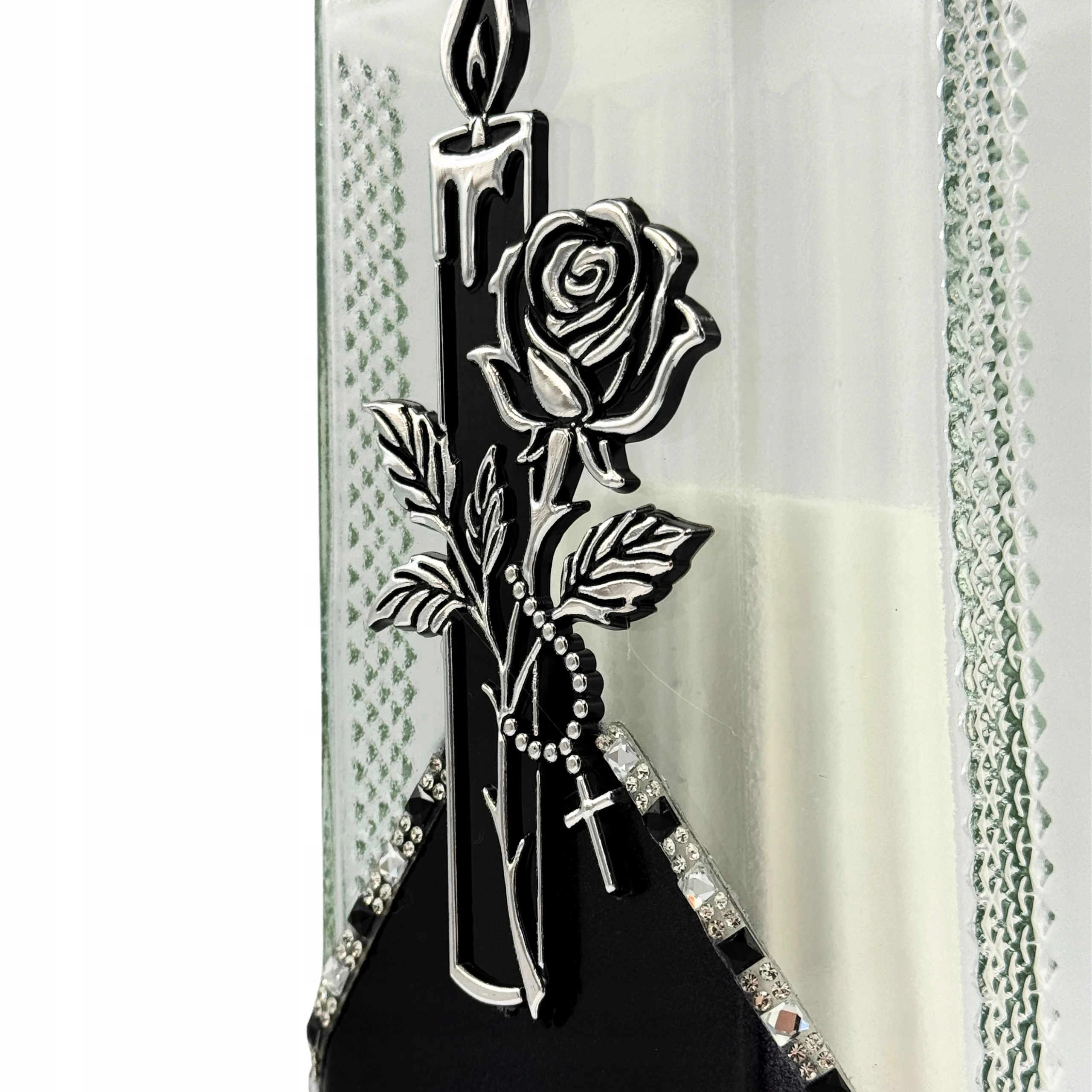 - Kolorystyka: szkło transparentne / czarne dodatki / srebrne zdobienie
