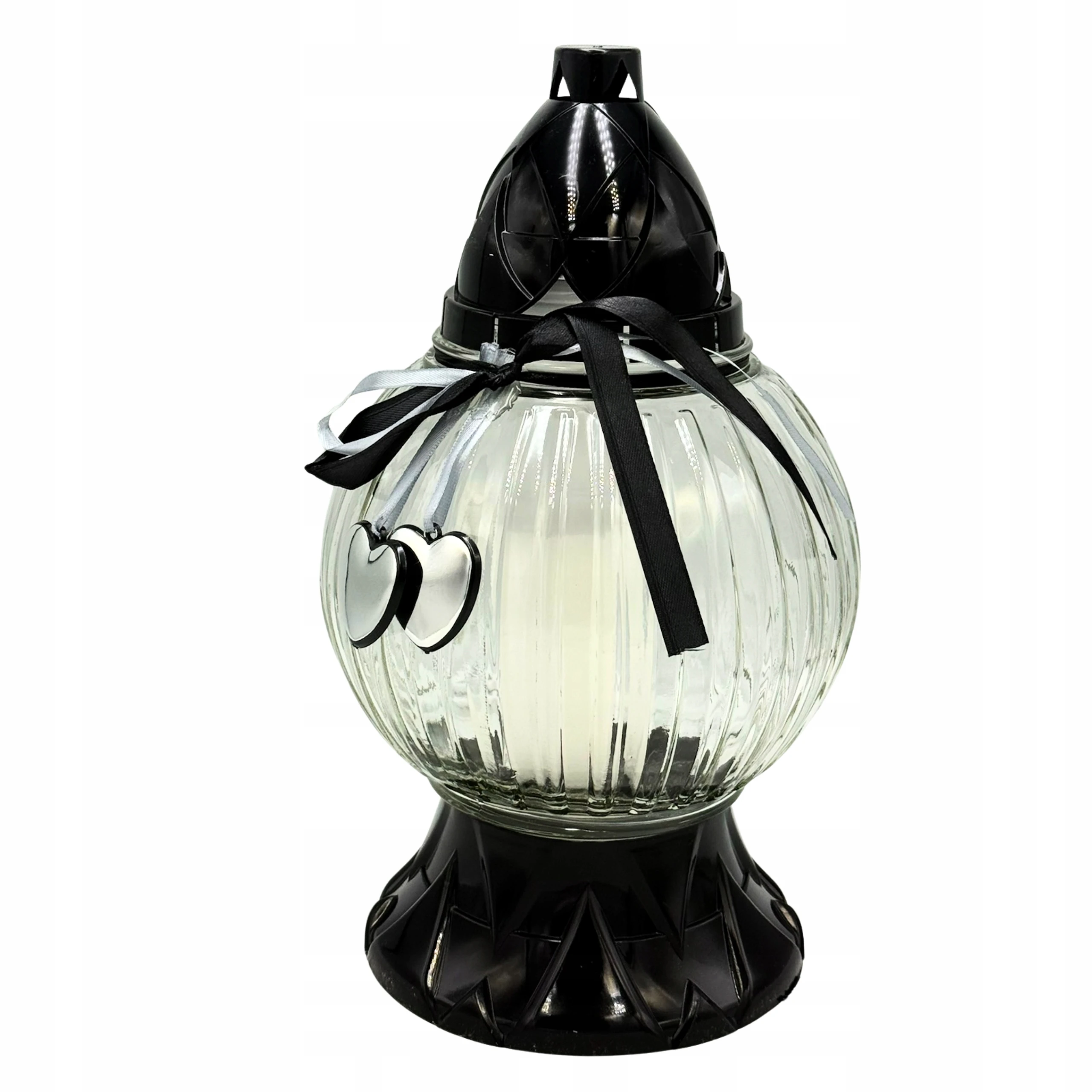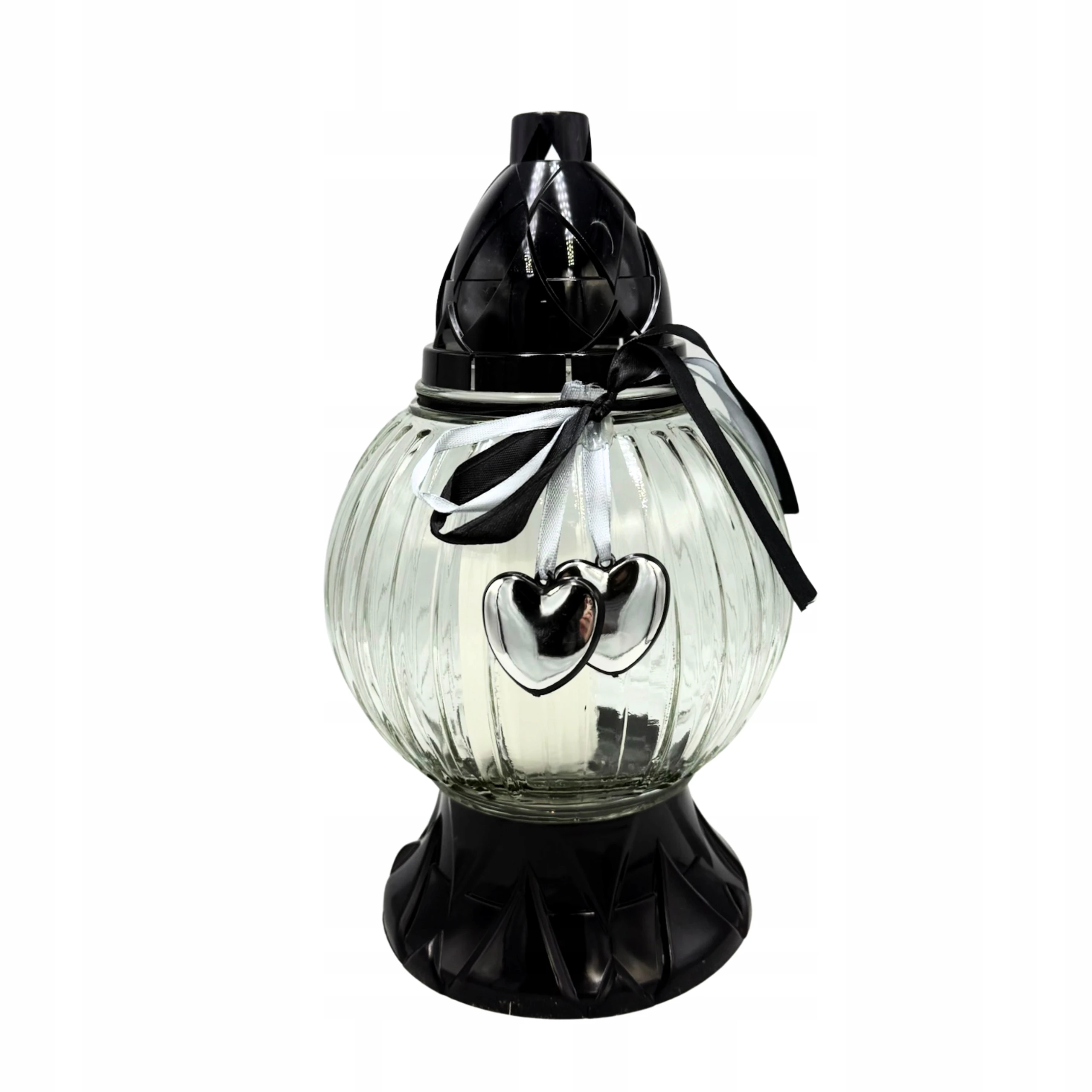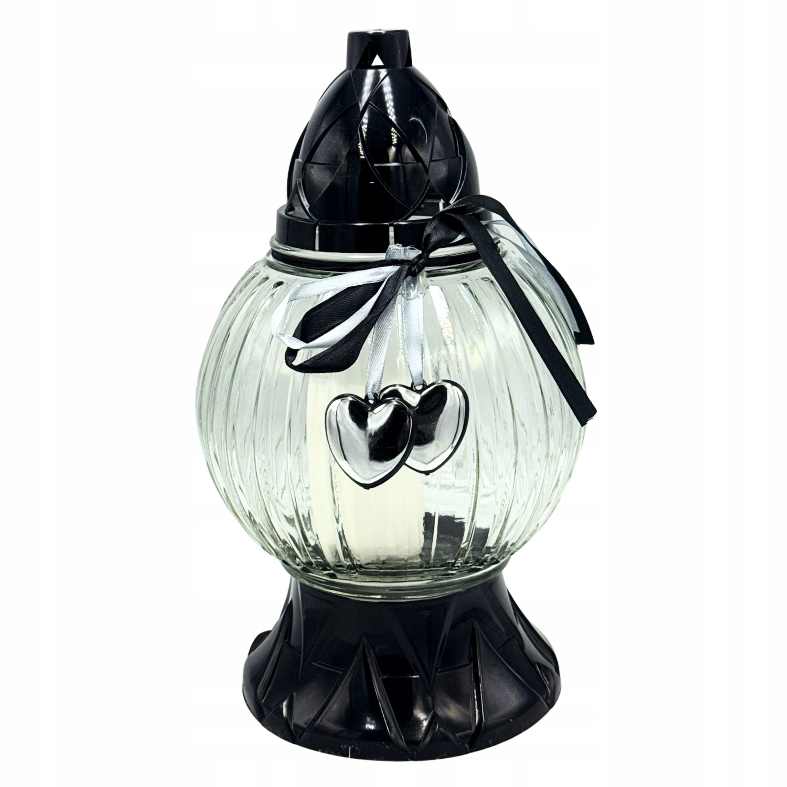 Znicz szklany kula z sercem 31 cm czarno-srebrny z wkładem