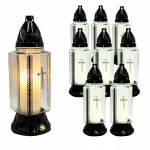 Komplet 8 zniczy z krzyżem i dekoracyjnym zdobieniem